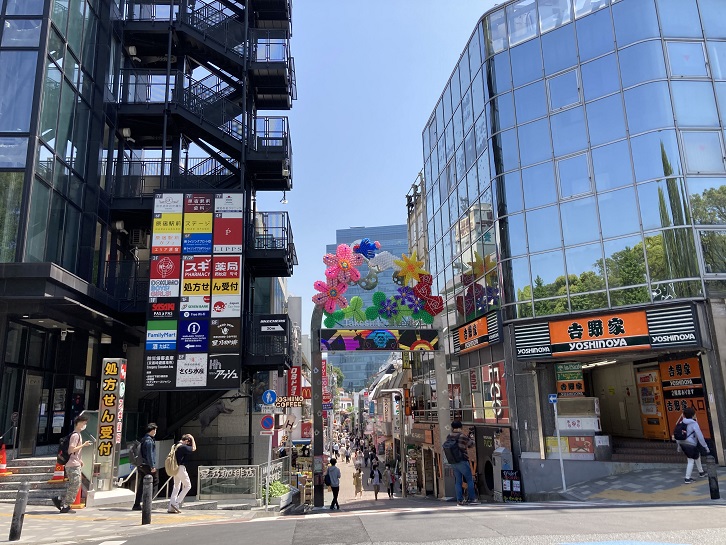 出発地の原宿駅竹下口から歩き始めます。原宿駅は2020年3月に新駅舎が開業しましたが、それは表参道に近い方で、竹下口改札の方は未だレトロな雰囲気が残っています。表参道でショッピングをする人は新設の東口、明治神宮で参拝をする人は新設の西口、竹下通りで流行を先取りする人は竹下口、目的もなく原宿にやってきた人は表参道口と、改札口が使い分けられています。竹下口改札の目の前は竹下通りの入口になっていますので、当然竹下口から竹下通りに向うのはローティーンが大半です。中には例外的な人もいますが。