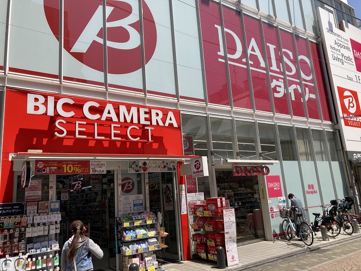 竹下通りはローティーン向けのお店ばかりかと思っていましたが、今ではBICカメラやDAISOのお店もあるんですね。懐の寂しい女の子にはDAISOの百均化粧品は重宝なんでしょうけど、BICカメラで何を買うのでしょうか?でも、ちゃんと食べ歩きのお供のクレープのお店もあります。なんか太りそう。