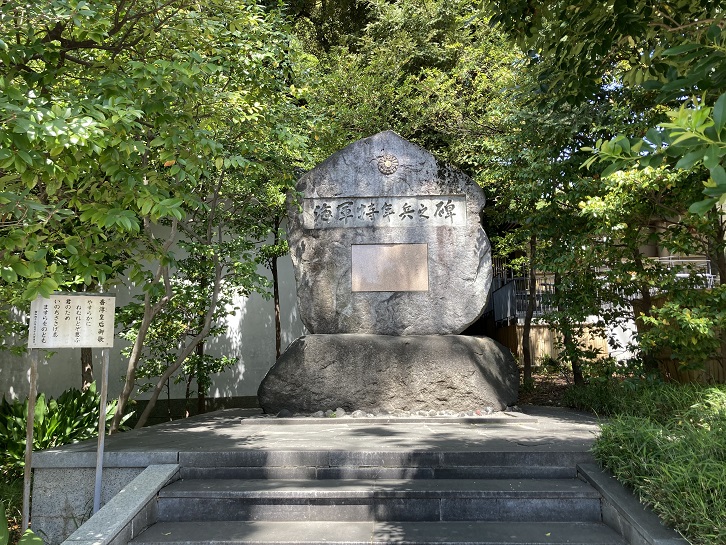 東郷平八郎は日露戦争時の連合艦隊司令長官だったので、彼を祀った東郷神社の境内には海軍関係の記念碑が多く建立されています。特年兵之碑もそのひとつです。ちなみに、特年兵とは、十四歳の少年から志願者を採用した海軍特別少年兵のことです。殉国碑は自然石に碑名を刻んで昭和四十六年5月16日に高松宮殿下及び同妃殿下の臨席の下に除幕式が行われました。毎年四月上旬に特年会の慰霊祭が催されています。少なくとも、女性と子供は絶対に戦場に出してはいけませんね。