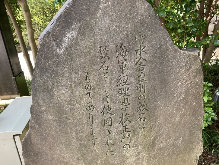 海軍経理学校は築地の勝鬨橋の近くにありました。今は史跡の案内板が立っているだけですが、こんなところに敷石が残されているんですね。