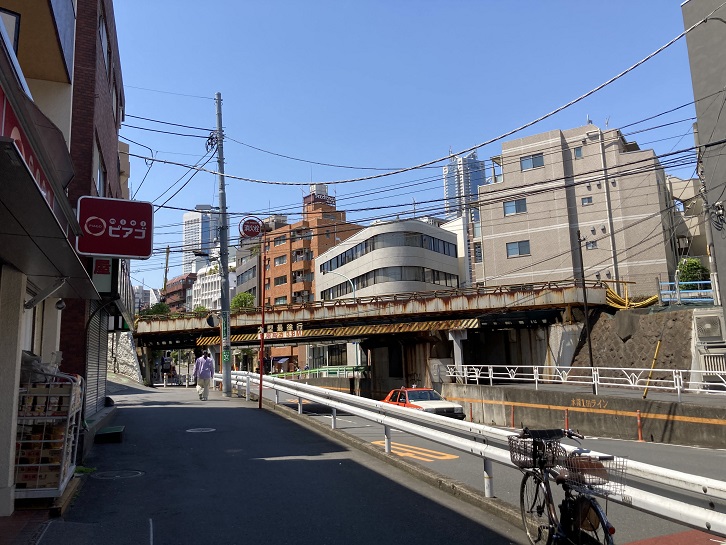 参宮橋の先に東京乗馬倶楽部の看板が見えます。看板の青色と新緑の植え込みが美しいコントラストをしています。東京乗馬倶楽部は大正十年(1921年)創設の老舗の乗馬クラブで、日本の馬術発展を支えてきた存在といえます。会員制で、正会員ともなれば入会金は200万円もしますが、格式を考えればゴルフ会員権よりは安いといえます。コロナ禍で優雅に馬場を闊歩する様子はあまり見られませんが、お馬さんは今どうしているのでしょうか?