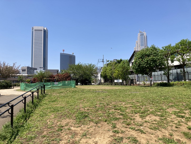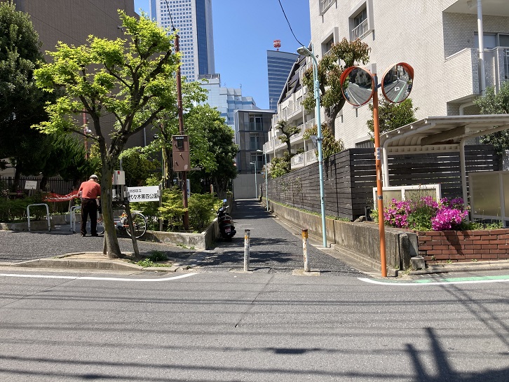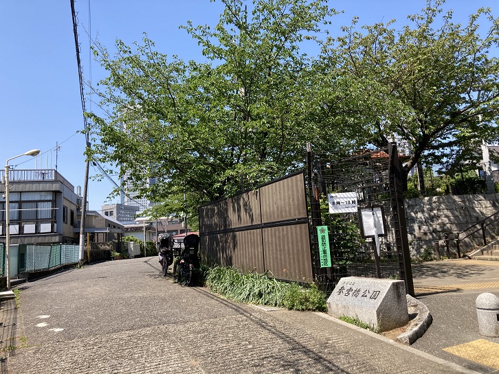 A参宮橋公園【急坂上のビュースポット、芝生+初台の高層ビル】