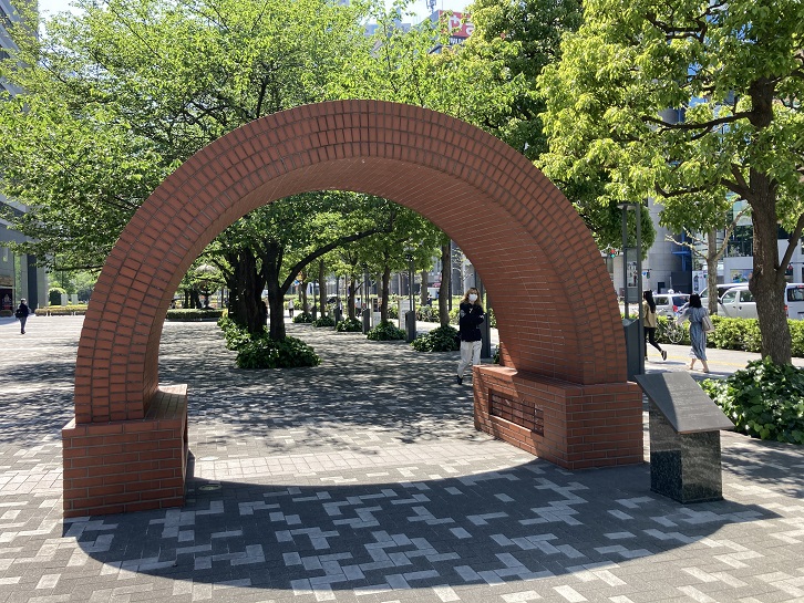 このモニュメントは、明治時代に新宿駅構内の地下に設けられた、玉川上水の煉瓦造りの暗渠をモチーフとし、当時の煉瓦を一部使用して、ほぼ原寸大で再現したものです。