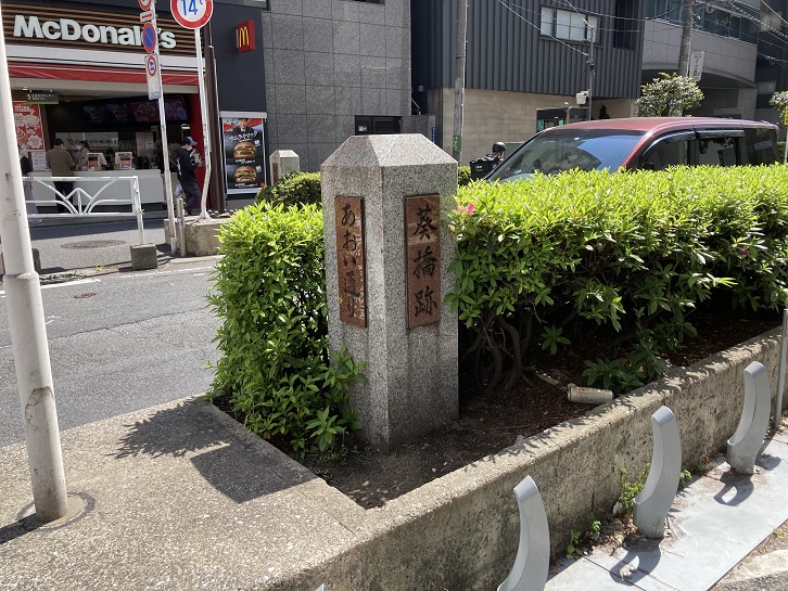 玉川上水の水路跡が見て取れるのは新宿駅手前のあおい通りまでです。ここで緑道は途絶え、玉川上水は新宿駅の地下に潜っていきます。その最後の橋が葵橋となります。