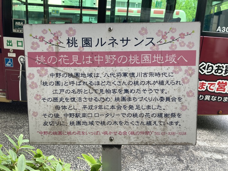 中野駅南口のバス乗り場に「桃園ルネッサンス」なるプレートが掛けられています。