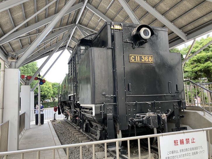 C−11は代表的なタンク機関車で、昭和七年C−10の改良型として都市近郊や支線の旅客用に誕生しましたが、やがて貨物用・入換用にと用途をひろげ、15年間で400輌近く製造されました。C−11−368は昭和二十一年製作で、第4次製造に含まれる車輌です。標準型と異なり炭車上部が斜でなくなったり、サイドタンクやキャブ下側の線が変更されたりしています。ここへ来るまで延べ113万kmを走破し、昭和四十七年7月まで石巻線(宮城県石巻−女川間)で活躍していた機関車です。