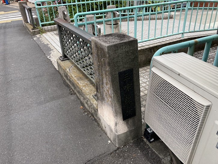 何回も通ったのに、今まで気が付かなかった案内板が立っています。小さな橋の跡なんですけど、三味線橋とは何とも風流な名前です。三味線と唄は聞こえてきませんでしたが。