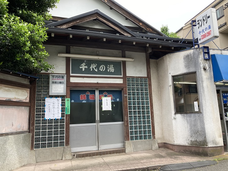 少し先の左手に千代の湯という今時古風な千鳥破風造りの銭湯があります。中野で昭和二十六年(1951年)から営業を続けている千代の湯は、テレビや映画のロケ撮影にも使われている中野の名銭湯です。質のよい井戸水を沸かしていて、乾式サウナは無料となっています。BGMを聴きながら富士山のペンキ絵を鑑賞するのも一興です。2011年12月に塗り替えられた富士山のペンキ絵は、絵師の丸山清人によるもので、男湯は西伊豆の雲見から正面に富士山を望む堂々たる作品です。一方の女湯には、主人の故郷が能登であることから見附島が描かれています。桶は手入れに手間ひまのかかる木製を使用しています。令和の時代も創業時からの銭湯文化を維持したうえで営業を続けていくとの心意気です。