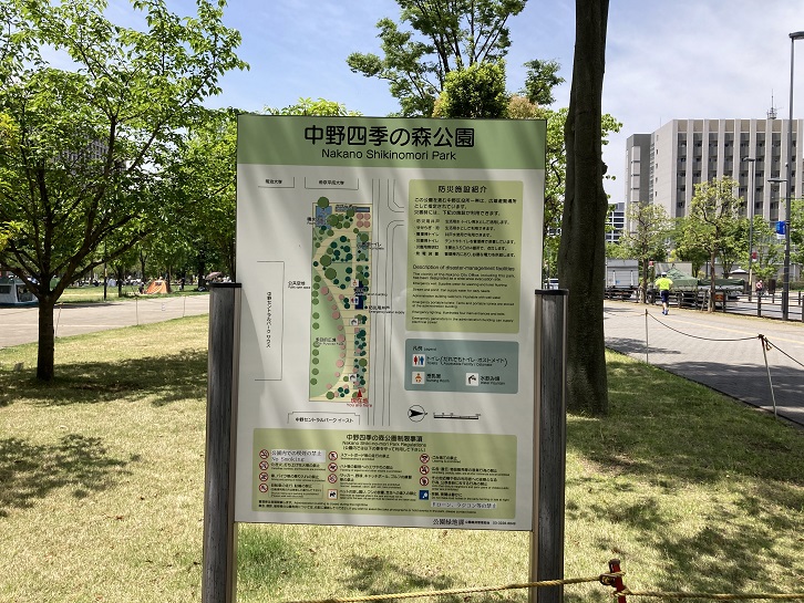 - 今日は中野区の中野四季の森公園周遊コースを歩きます。中野四季の森公園のセントラルパークイーストをスタート地点として、中野四季の森公園を一周し、新緑の緑に浸ります。