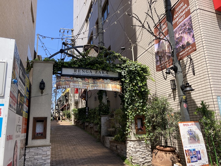 レンガ坂を抜けた先が工事用の塀で囲われています。この空き地は、中野駅西側の新しい橋上駅舎の新設に伴い、南北を結ぶ新たな連絡通路の起点となる新南口広場になるようです。令和二年度から駅舎建物本体の工事に着手し、令和八年(2026年)に開業予定とのことです。5年後にはコロナ禍も終息していることでしょうから、レンガ坂通りは新南口広場から直結の商店街として更に賑やかになることでしょう。