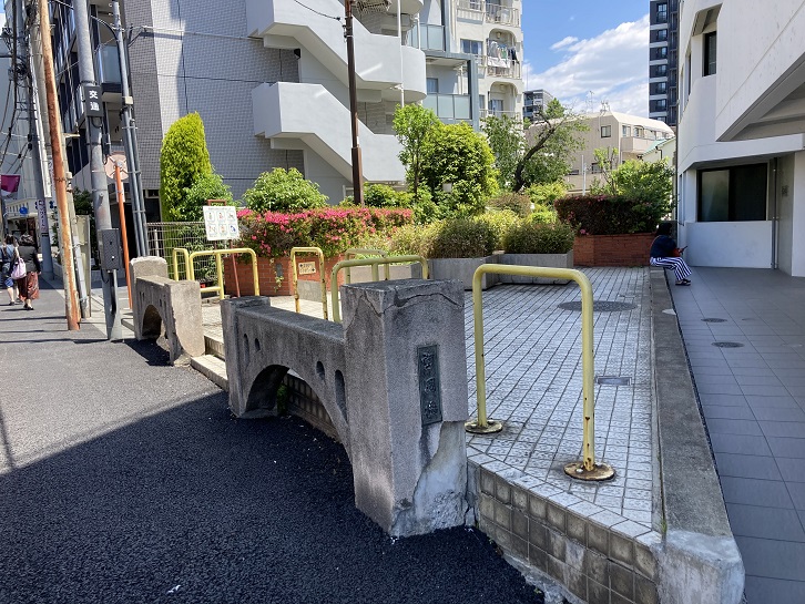桃園川緑道には、かっての桃園川に架かっていた多くの橋の痕跡が残されています。宮園橋もそのひとつで、中野五叉路から延びる大久保通りに架かっていた橋です。