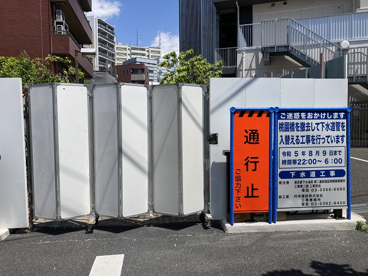 桃園橋は、桃園川の面影を最も感じさせる石造りの親柱が残っています。現在は橋の周辺が工事中のため、その全容を眺めることはできなくなっています。