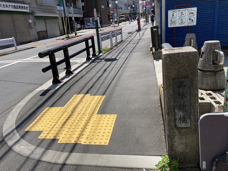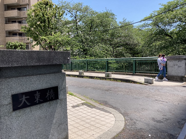 @桃園橋【石造りの親柱が残っており、川があった面影を感じられます】
