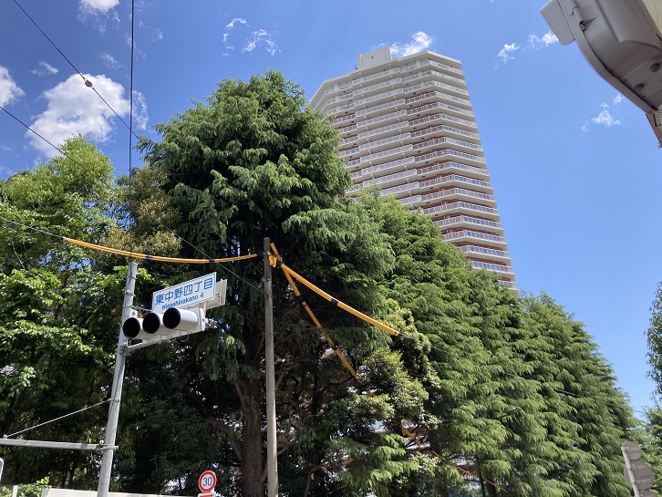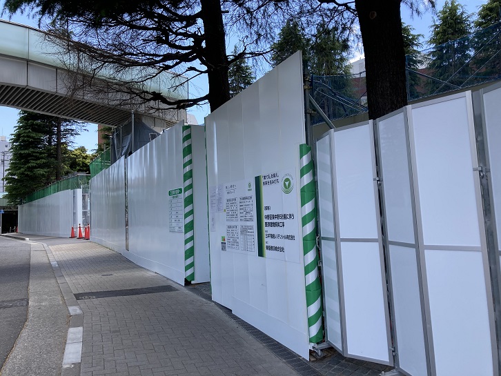一方、日本閣跡地の西半分には「West 53rd日本閣」が新たな結婚式場として2005年にリニューアルオープンしましたが、これも2020年5月に閉館し、建物が解体された後、現在緑溢れるその敷地は工事用の塀で囲われています。ここもパークタワー東中野というマンションの建設が予定されています。この緑豊かな大木が伐採されるのかと思うと、東中野住民でなくても残念な気持ちになります。