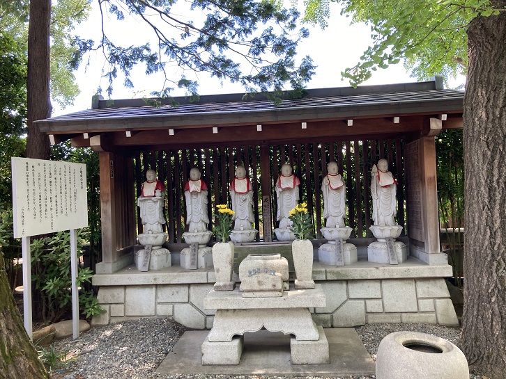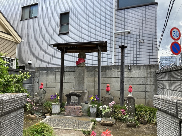 本郷氷川神社のすぐ先に秋津子育地蔵尊があります。路地の角地に面した境内には4基の石塔が置かれています。中央の地蔵は模造して昭和二十四年(1949年)に新しく建てられたそうで、左端の石塔が昔からある秋津子育地蔵尊といわれています。秋津子育地蔵尊と呼ばれているのは、この地蔵の再建に尽力した津田氏の母が秋元家から津田家に嫁いだことで、頭文字を取って秋津と名付けたそうです。本当かいな?