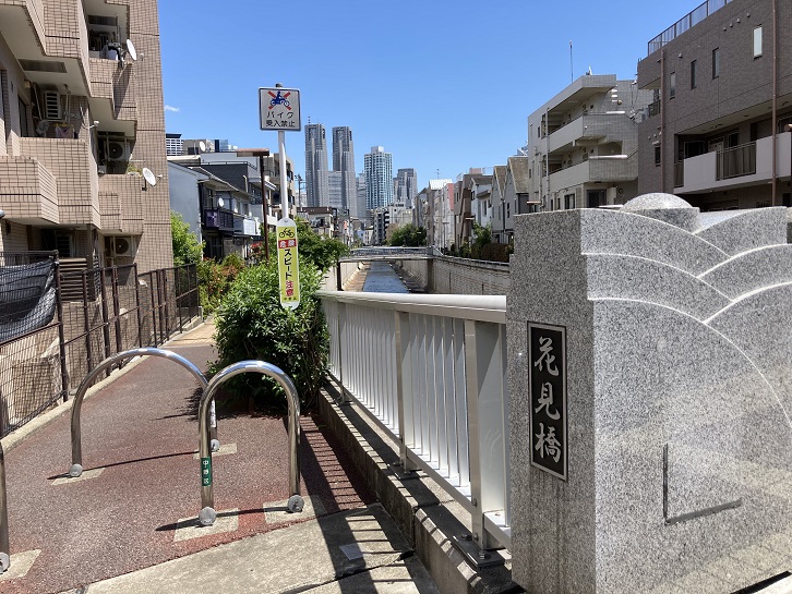 月見橋から花見橋まで神田川沿いの遊歩道を進みます。中野のこの辺りは新宿副都心の真西に位置していることと、神田川で視界を遮る建物がないために西口の超高層ビル群が綺麗に見えます。それにしても、月見に花見とは風流な名前の橋ですね。
