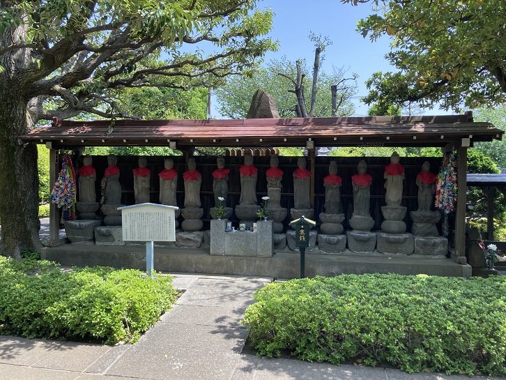 山門をくぐった先の右側には、江戸初期のころ奉られた石造の十三仏が並んでいます。案内板には、それぞれの忌日毎に救済を行う仏菩薩の名前が書かれています。