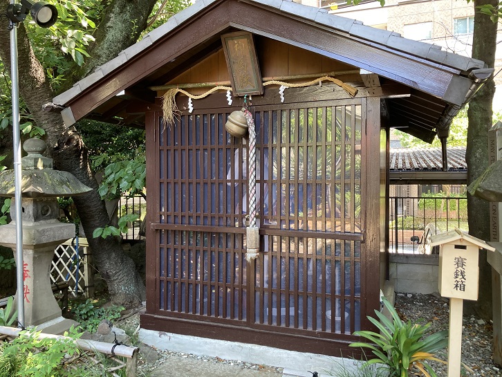 境内の大木に隠されるように石碑が置かれています。駿馬塚と彫り込まれていますが、この馬が命の続く限り駆けたので、現在の新宿御苑の広大な敷地が生まれたのですね。余談ですが、徳川家康が同じように馬で回れた土地を与えた話は他にもあります。青山忠成は幼少の頃に三河国(愛知県)に来て徳川家康の小姓を勤めました。青山忠成は天正十八年(1590年)の小田原役の時に江戸に先発して家康の江戸入府の準備に力を尽くしました。徳川家康は江戸に入府後、直ちに家臣団の知行割(家臣団の配置)を実施しました。そんな折、忠成が家康の鷹狩りに随行していたところ、家康は赤坂の上から西の方を見渡し、忠成に向かって「馬に乗って一回りして参れ。その範囲の土地を屋敷地として与えよう」と言いました。そこで忠成は馬が弊死するまで駆け巡り、木に目印の紙を結んで境界としました。当時、赤坂から渋谷の西川までの地は原宿と呼ばれていましたが、忠成が屋敷地として賜ったために、その後は青山宿と呼ばれるようになりました。それが現在の青山の地名の由来となりました。