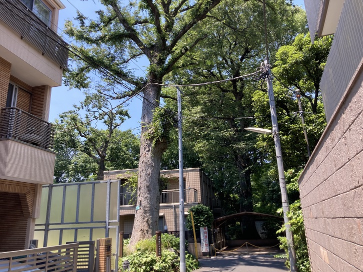 外苑西通りからひとつ入った内藤町けやき公園に欅の大木が聳えています。