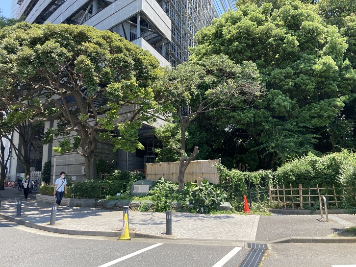 正門前から少し左にカーブした先に大京町交番があります。この近くに新撰組で活躍した沖田総司が療養中に亡くなった植木屋平五郎の離れがありました。植木屋平五郎の家はかっての渋谷川に面していましたが、現在は渋谷川跡には雑草が生い茂るのみとなっています。
