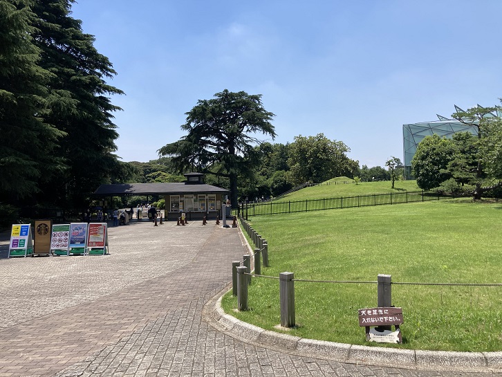 四谷区民センターに隣接して、大木戸門があります。新宿御苑に入園するには新宿門か大木戸門を使うのが一般的です。大木戸門から入園すると、大温室やフランス式整形庭園(軸線を中心にした左右対称で幾何学的な構成の庭園)、それに中の池・下の池に近くて便利です。初夏の青空と緑の芝生が私を手招きしていますが、今日のところはパスします。
