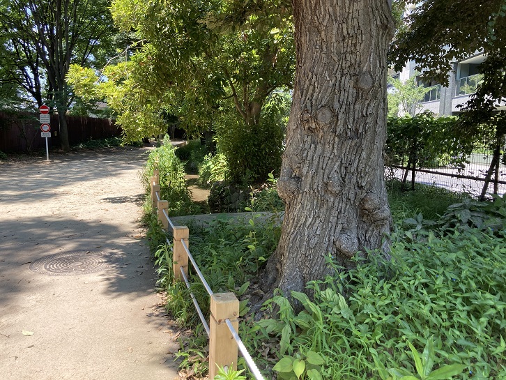 入園料をケチったという訳ではありませんが(実際はそうです)、大木戸門の右横には新宿御苑の外柵に沿って自由通路が設けられています。勿論、誰でも無料で通ることができます。遊歩道の両側には大木が茂り、初夏の陽射しを遮ってくれます。