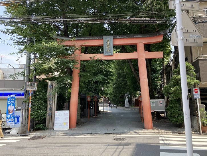 赤城神社が当地にお遷りする以前(弘治元年(1555年))から牛込の鎮守とされ、奉祀してきた産土神(神道において、その者が生まれた土地の守護神を指します。その者を生まれる前から死んだ後まで守護する神とされており、他所に移住しても一生を通じ守護してくれると信じられています)です。出世開運、五穀豊穣、商工業繁栄のご神徳があり、サラリーマンの出世祈願、神楽坂商店街の商売繁盛で人気があります。