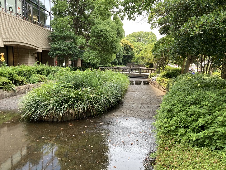 飯田橋交差点から新装なったJR飯田橋駅西口に向かう外堀通りの内側に飯田濠跡に造られた公園があります。牛込橋から飯田橋までは、かって水を湛えた濠になっていました。現在は埋め立てられてRAMLAというショッピングモールと植栽を施した親水公園になっています。