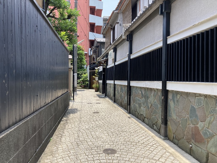 かくれんぼ横丁は、名前が表す様に迷路のように入り組んだ路地と黒塀に囲まれた料理屋さんが並ぶ落ち着いた佇まいの小路です。