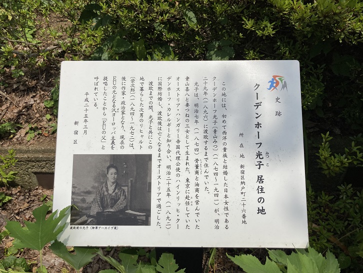 新宿区立納戸町公園は、西洋の貴族と結婚した初めての日本人女性であるクーデンホーフ光子さんの居住地跡です。