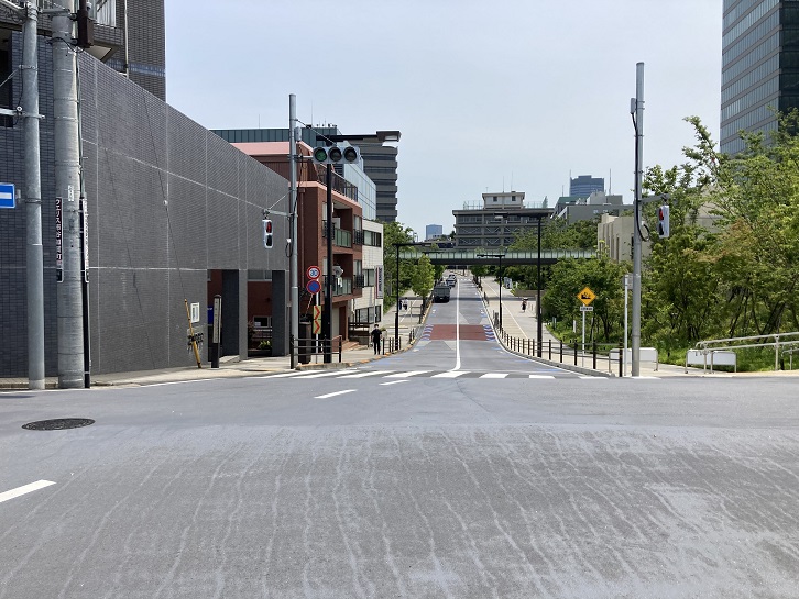 牛込三中角交差点から南方向に、大日本印刷市ヶ谷工場の間を通って日本学生支援機構(旧日本育英会)ビルに至るかなり急な坂があります。北から南に向かって下り、途中から上る擂鉢状の坂道です。江戸時代以前は、薬王寺町辺りを源頭とする沢が擂鉢状の低い部分を流れて外濠(江戸以前は紅葉川)に流下していたそうです。周囲には大日本印刷関連の建物がいくつもあって「大日本印刷村」のようになっています。