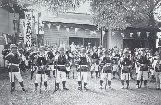 案内板には、出陣式の様子を写した写真が添えられています。随分と身軽な装備ですね。