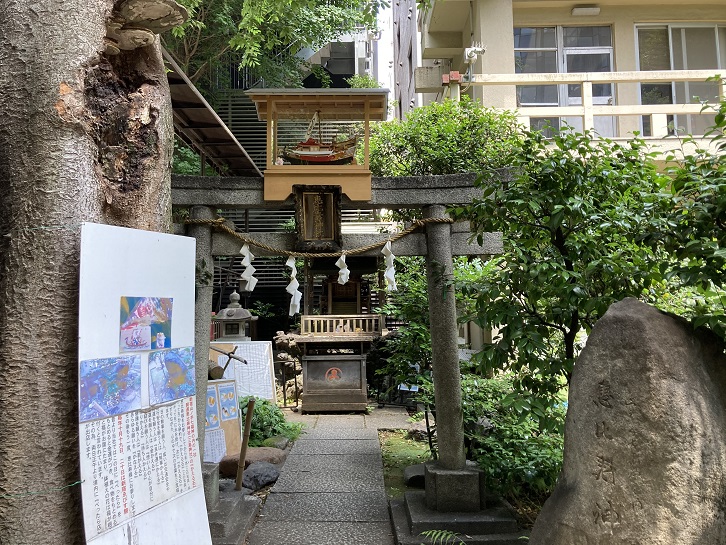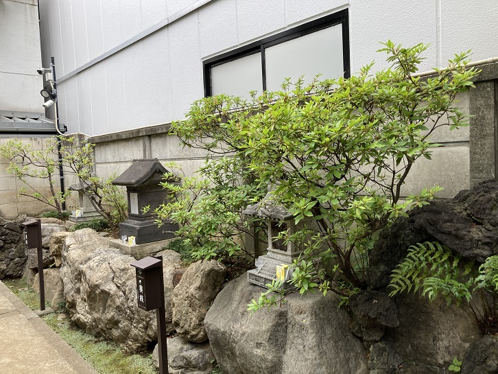 皆中稲荷神社の社務所には、「大久保つつじ保存会」の事務所も置かれています。境内には当時のつつじの子孫でしょうか、何本かのつつじの木が小さな社の横に植えられています。