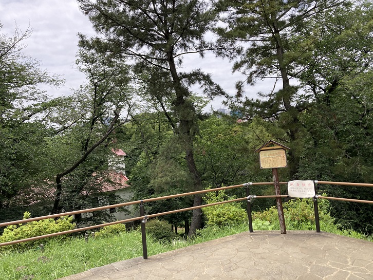山頂からの眺めは芳しくありません。山頂ではあるのですが、何せ44.6mの標高では藤井聡太先生がおっしゃるように「森林限界の手前あたり」で、周囲が樹木に遮られて殆ど見えないのです。新宿の高層ビルが見えたら絶景でしょうけど。