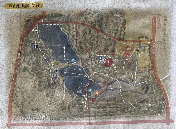 その隣には、戸山荘の主要な施設を解説した案内板も立っています。