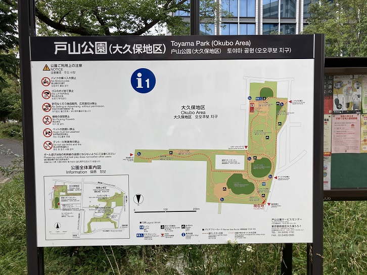 大久保スポーツプラザ交差点を右折し、保善高校入口交差点から戸山公園に入ります。戸山公園は明治通りを挟んで、大久保地区(西側)と箱根山地区(東側)に分かれています。箱根山地区は「C山手線内最高峰と漱石山房記念館をめぐる」で訪れましたので、今日は大久保地区を巡ります。というとC→Dの順に歩いたようになりますが、実際は今日(5月31日