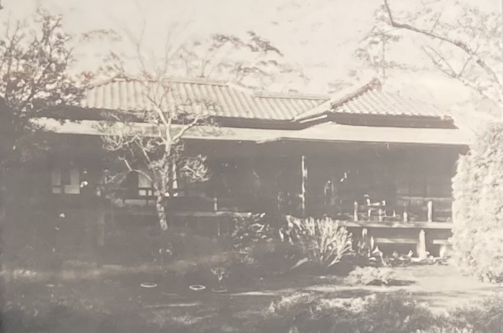 庭を一望できる場所にあった数寄屋風の建物で、絵や調度品で飾られていた。池畔には2本の柳の老木があり、両横の人江にはそれぞれ橋が架かっていた。