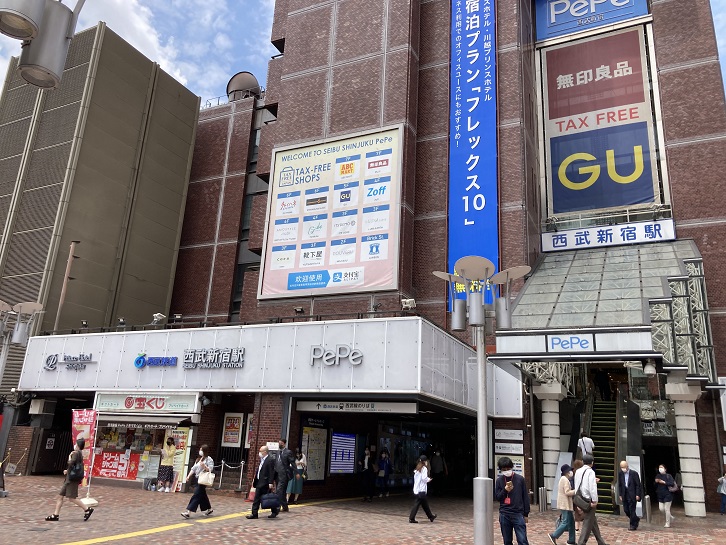 ゴール地点の西武新宿駅正面口にやって来ました。JR新宿駅とは少し離れていますが、東京の西部方面に住む人達には重要な鉄道駅です。駅ビルの「PePe」は、西武鉄道沿線にある駅ビルやショッピングセンターの名称で,「Prince Promenade」の略です。