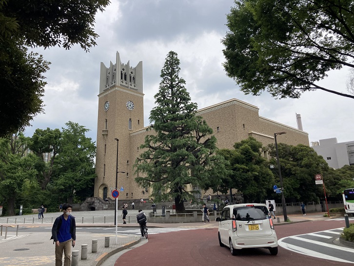 正門の前方には、早稲田大学のシンボルであるチューダー・ゴシック様式の大隈講堂が聳えています。受験雑誌でよく見る特徴的な外観をした建物です。昭和二年(1927年)に建てられたのですか?そんな年季を感じさせないですね。実は、大学の創立125周年(2007年)記念事業に向け、2006年から2007年にかけて再生工事が行われたのです。外観と大講堂の歴史的な意匠を保存しつつ、耐震補強や文化ホールとして多機能化を行われたそうですので、外観が新しく見えたのも再生工事の結果かもしれません。ちなみに、創立125周年は、大隈重信が唱えた人生125歳説を基にしたもので、早稲田大学の第二世紀の幕開けを記念したものだそうです。