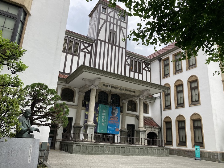 大学の構内には、幾つかの記念館が残されています。演劇博物館は、近代日本文学や演劇運動に大きな影響を与えた坪内逍遥を記念して建設されました。