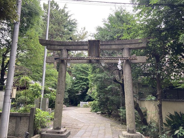 水稲荷神社は、平将門を討ったことでも知られる鎮守府将軍俵藤太秀郷(藤原秀郷)が「富塚」の古墳の上に倉稲魂大神(稲荷大神)を勧請し、天慶四年(941年)に創建されました。「富塚稲荷」とか「将軍稲荷」と呼ばれ、信仰を集めました。元禄十五年(1702年)、神木の椋(むく)の木の根元から霊水が湧き出し、眼病に利くとして評判になりました。また、火難退散の神託が下ったことで、「水稲荷神社」と称するようになりました。霊水が湧き出した大椋は昭和二十年(1945年)に戦災によって焼失しましたが、根元は残存して現在も大切に保存されています。消防や水商売など”水”に関わる仕事関係者から篤い崇敬を集めています。また、境内社の高木神社と北野神社は学業に御利益があるとされ、早稲田大学受験生の人気が高いそうです。石造りの鳥居を抜けて境内に進みます。