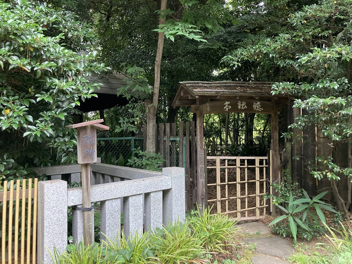 駒繁松の近くに、「聴松亭」という茶室跡があります。聴松亭は清水徳川家の遺構で、遷座の際に甘泉園より移築されました。鬱蒼とした木立に中に建っていますので、夏の季節、お茶を頂く時に蚊が現れなければいいのですが。