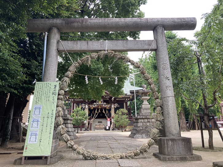 今日は6月13日ですが、境内には茅の輪が置かれています。「祓(はらえ・はらい)」は日本の神道儀式のひとつで、特に6月と12月の晦日、つまり新暦6月30日と12月31日に行われ、天下万民の罪穢を祓う儀式を大祓といいます。「夏越の祓(なごしのはらえ)」では多くの神社で「茅の輪潜り」が行われます。参道の鳥居などの結界内に注連縄を張り、茅(ちがや)で編んだ直径数mほどの輪を建て、ここを正面から最初に左回り、次に右回りと8の字を描いて計3回潜ることで半年間に溜まった病と穢れを落とし、残りの半年を無事に過ごせることを願うという儀式です。
