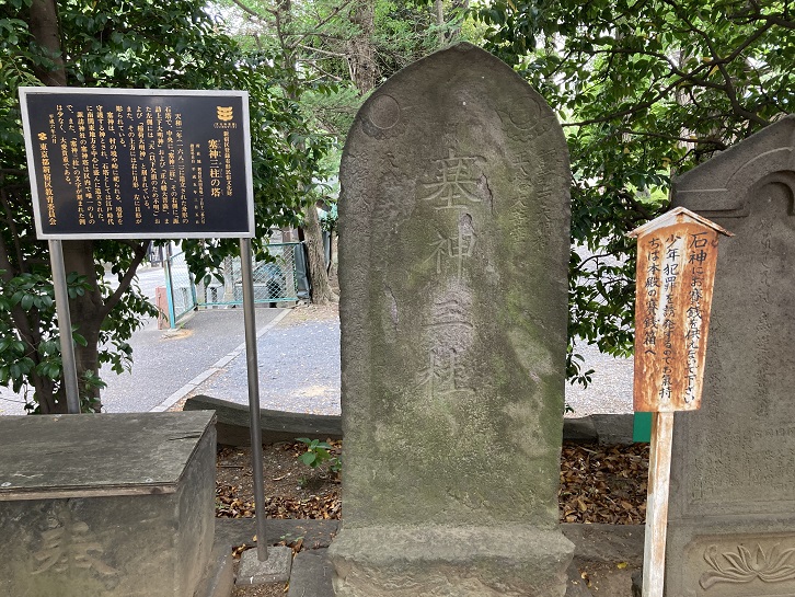 水稲荷神社を出て路地を進みますと、角地に「地蔵横町」という標識が立っています。マップには記載されていたのですが、「源兵衛子育地蔵尊」が早稲田通り沿いにあるのを見落としてしまいました。小泉源兵衛は豊臣家代々の家臣で、大坂夏の陣の後の元和元年(1615年)に鈴木喜右衛門・関口新・醍醐兵左衛門と共に江戸に逃れ、当時荒地だったこの地を開墾して隠れ住み、源兵衛村を作りました。その後、源兵衛ら4名は力を合わせて鉄砲玉を作り、火薬の番をしながら荒地を開拓していきました。享保十一年(1726年)に小泉源兵衛が亡くなると、その功績を記念するために地元の人々が子育地蔵を安置しました。この地蔵が「源兵衛子育地蔵尊」として残っているのです。今でも西早稲田商店会が法要を行っているそうです。子育地蔵尊には、子宝・安産・病気治癒・商売繁盛・交通安全などたくさんのご利益があるとされています。