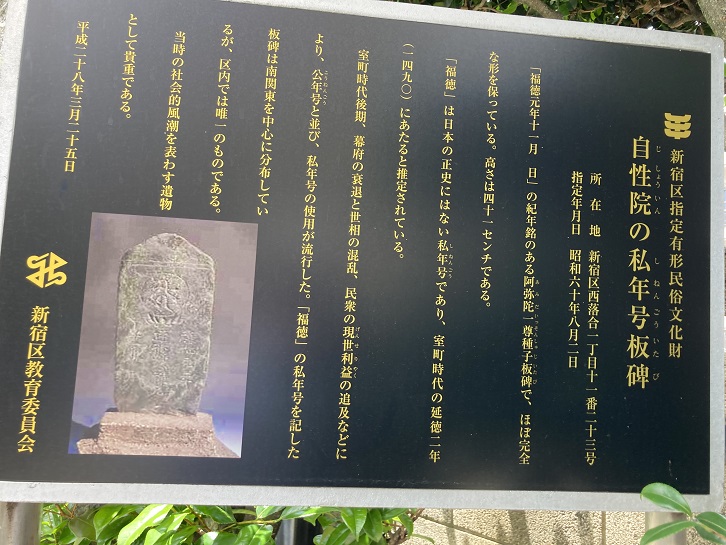 新宿区指定有形民俗文化財 自性院の私年号板碑