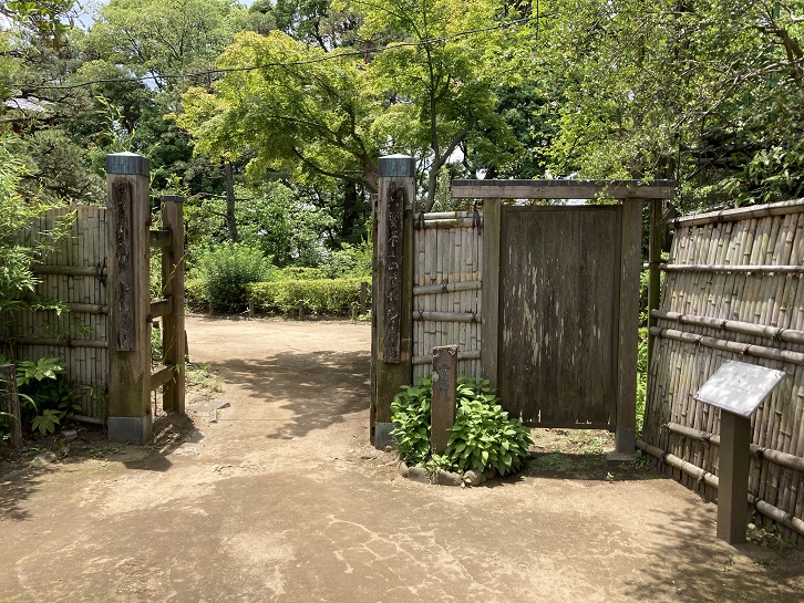 正面門の脇に哲学堂公園の由来を記した案内板が立っています。この門が哲学堂公園巡りのスタート地点となりますので、哲学門を通って真理界に足を踏み入れます。