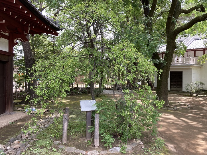 宇宙館の脇に梅の木が植えられています。現在の木は植え替えられたもののようですが、先ほどの哲理門(妖怪門)の案内板にあった幽霊梅の跡のようです。