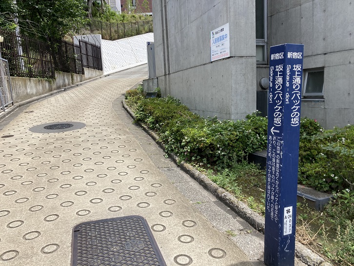 目白学園に向かいますが、この辺りは妙正寺川から多くの坂道が高台(落合台地)に向かっています。地図で確認したところ、「一の坂」・「二の坂」・「三の坂」・・・「八の坂」まであります。その他にも独自の名前をもった坂があります。「バッケの坂」ってどういう意味なんでしょうか?「バッケ」というのは崖のことで、武蔵野崖線を「ハケ」と呼ぶのと同じです。 坂下にある川沿いの運動公園が昔はバッケが原という野原だったころから、バッケが原への近道という意味でついた名前とのことです。