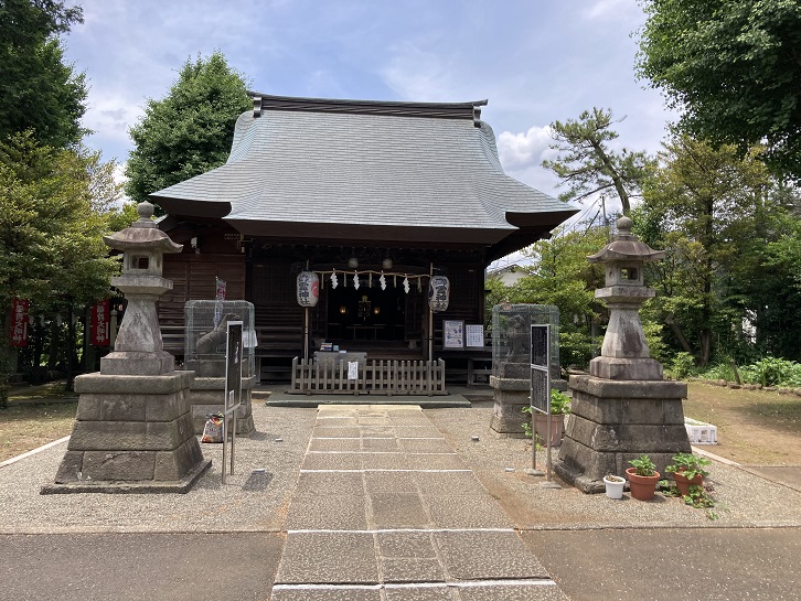 目白学園に行く前に御霊神社に立寄ります。御霊神社は落合村中井の鎮守であり、安産守護子育ての神様とされています。豊作と安産を祈った備射(流鏑馬のような神事)で使われた弓弦の麻を小さく切ったものを安産のお守りとして希望者に貸授しており、現在も遠くから妊婦の参詣が多いということです。本殿の前に何枚かの案内板が立っています。