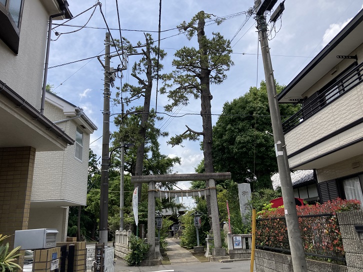 中井御霊神社のシンボルは境内に空高く聳えるクロマツです。枝打ちしてあるのでしょうか、なんとなく松葉が寂しい感じです。